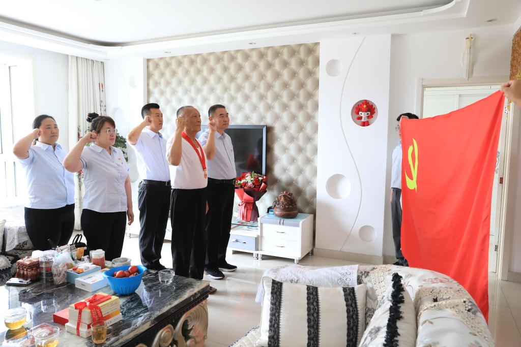 六月11日,集团总部总部党组委员会、纪检委党支书、企业工会副主席张立峰陪同总部成年共青团员问慰困难群众问慰了党龄满50年的老共青团员,同心同德大家颁授“辉煌在党50年”了纪念章。
