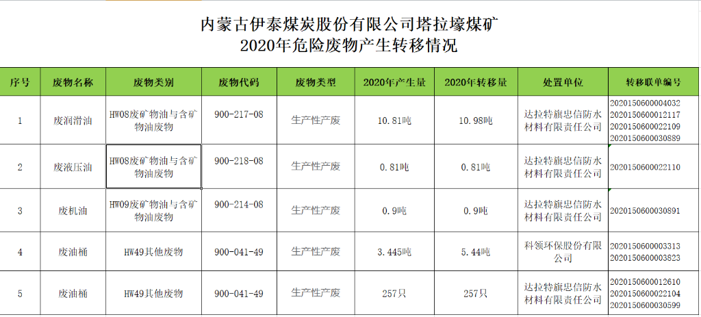 伊泰塔拉壕煤矿2020年危险废物产生情况 <span>发布时间:2021-07-22</span> | <span class="views">关注:<b id="viewCountId">3811</b></span> | <a href="javascript:void(0)" class="print"><i class="ion"></i></a> 米兰体育官方网站:转移联单_2020150600003823.pdf 米兰体育官方网站:转移联单_2020150600003313.pdf 米兰体育官方网站:转移联单_2020150600004032 .pdf 转移联单_2020150600012117.pdf 米兰体育官方网站:转移联单_2020150600012610.pdf 转移联单_2020150600022104.pdf 米兰体育官方网站:转移联单_2020150600022109.pdf 米兰体育官方网站:转移联单_2020150600022110.pdf 米兰体育官方网站:转移联单_2020150600030599.pdf 转移联单_2020150600030889.pdf 米兰体育官方网站:转移联单_2020150600030891.pdf 米兰体育官方网站:返回列表 米兰体育官方网站:上一条 下一条