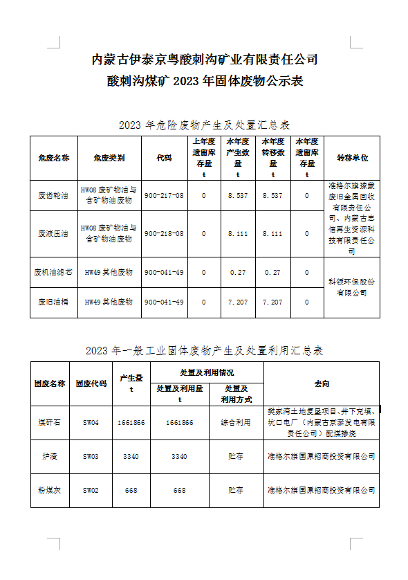 米兰体育官方网站京粤酸刺沟矿业有限责任公司 酸刺沟煤矿2023年固体废物公示表 <span>发布时间:2024-01-15</span> | <span class="views">关注:<b id="viewCountId">379</b></span> | <a href="javascript:void(0)" class="print"><i class="ion"></i></a> 返回列表 上一条 下一条