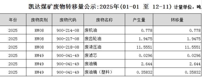 凯达煤矿废物转移量公示:2025年(01-01 至 12-11) <span>发布时间:2025-12-17</span> | <span class="views">关注:<b id="viewCountId">109</b></span> | <a href="javascript:void(0)" class="print"><i class="ion"></i></a> 返回列表 上一条 米兰体育官方网站:下一条