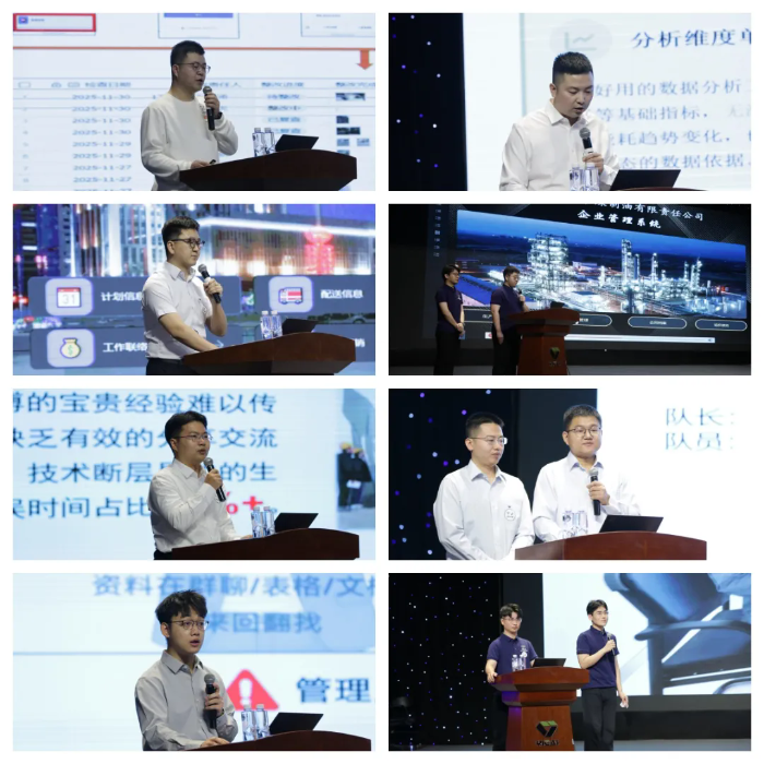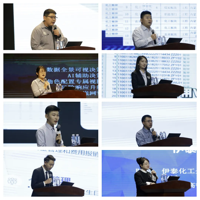 大赛案例展示环节,来自生产运营、市场营销、财务管理、人力资源等各业务领域的16支参赛团队同台竞技,通过具体业务场景,生动展示了飞书多维表格、集成门户、自动化工作流等工具在提升效率、优化流程、辅助决策方面的实际价值。经过精彩角逐,“伊路畅行”团队凭借突出的数字化创新与实践成果斩获一等奖;“一期管培生·销勇七先锋”与“化安先锋队”获二等奖;“人力行政通”、“伊泰化工企管提效先锋队”及“煤制油电效先锋队”获三等奖;“伊泰化工生产部质环效率组”获得人气奖。